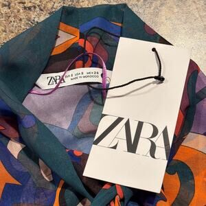 NWT Zara Dress Psychedelic Hippie Festival Boho Retro Disco Abstract Art Small