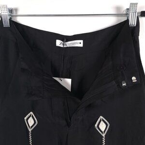 NWT Zara Embroidered High Waisted Silky Satin Wide Leg Pants 6895/272/800/ XS