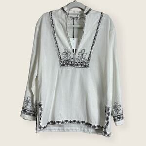 NWT | Zara | Embroidered V Neck Top | White/Black | Size XS