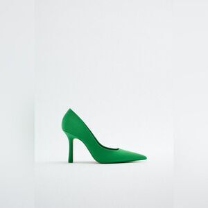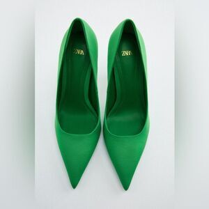 NWT Zara Fabric Kitten Heel Point Toe Shoes in Green