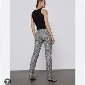 NWT Zara Faux Leather Animal Printed Pants XS Snakeskin Straight Leg Trouser