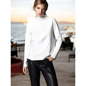 Beautiful Zara Faux Leather top with a high neck, long sleeves and a chest patch pocket.