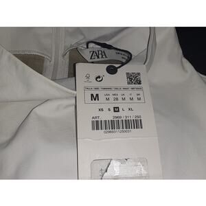 NWT - Zara Faux Leather with Crew Neck Ling Sleeve Taupe Top Medium