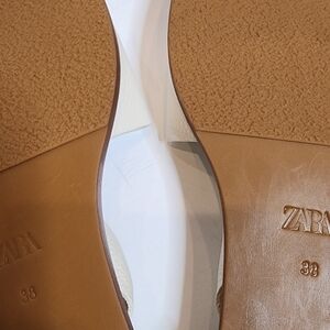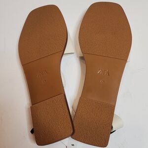 NWT Zara Flat White Leather Slider Sandals With Heel Strap Size EU 38 Stud Detai