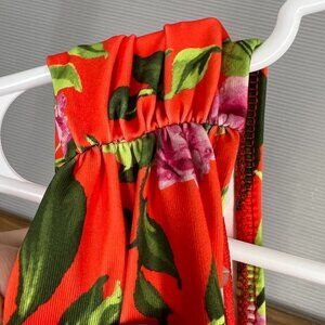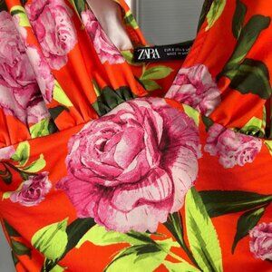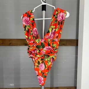 NWT Zara Floral Draped V-Neck Wide Straps Snap Bodysuit Red Pink Green Sz S