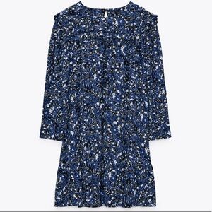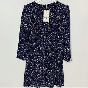 blue white new small granny Floral Ruffle Mini Dress ZARA