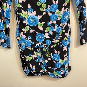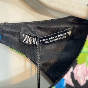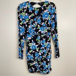 NWT Zara Floral Mini Long Sleeve Open Back Blue Black Dress Size Womens Medium