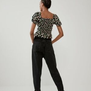NWT Zara Floral Print Button Front Puff Sleeves Ruffle Peplum Crop Top Size XS