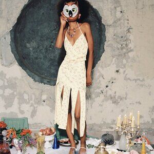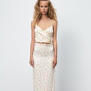 NWT Zara Floral Print Spaghetti Strap Halter Tie Back Cropped Top