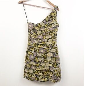 Zara Floral Tiered One Shoulder Mini Dress Size XS