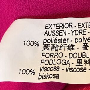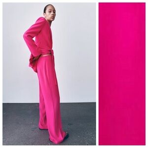NWT. Zara Fuchsia Viscose Belted Tuxedo Jacket with tuxedo collar, long sleeves, front pockets and chest welt pockets. tied self belt. Interior lining, front hidden button closure. Size M. Ref. 2310/187. Pit to pit 19" flat, shoulders 15", sleeves 24,5", length 29".