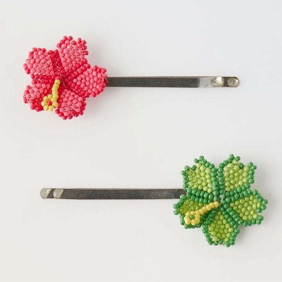 NWT Zara Girls Kids Beaded Floral Hair Clips 2pcs 🌸