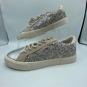 NWT. Zara Girls Silver/Tan Glitter Sneakers. Size 6.