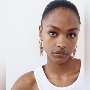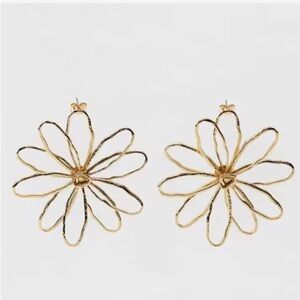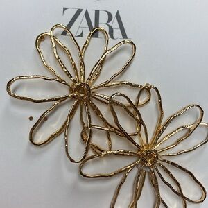 NWT. Zara Golden Engraved Flower Maxi Earrings.