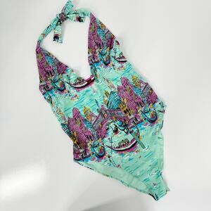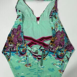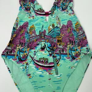 NWT Zara Gondola Print Swimsuit Aqua One Piece Beach Vacay Cruise Resort Size L