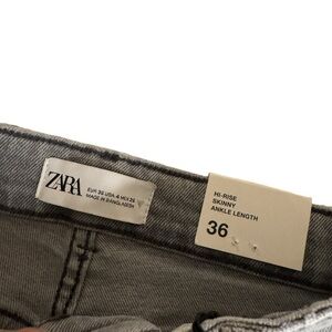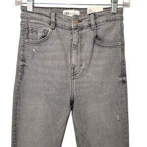 NWT Zara Gray High Rise Skinny Ankle distressed denim Jeans Womens 4