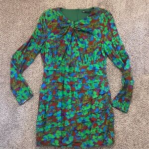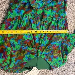 NWT! Zara Green Blue Floral Multicolored Draped Front Top Slit Mini Dress XL