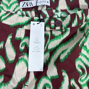 NWT Zara Green & Brown Light Weight Patterned Trousers Size XL