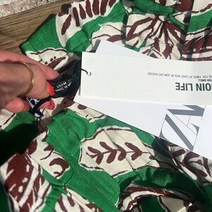 Brand NEW NWT Zara Green Print Shorts Size Medium High Waisted w Belt