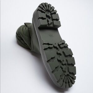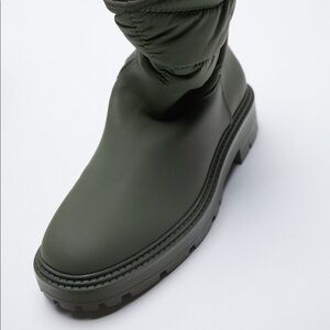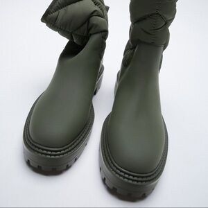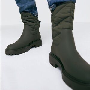 NWT. Zara Green Quilted Rubberized Low Heel Ankle Boots. Size 6.