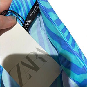 NWT Zara Groovy 70s Disco High Waisted Wide Leg Blue and White Pants Size Small