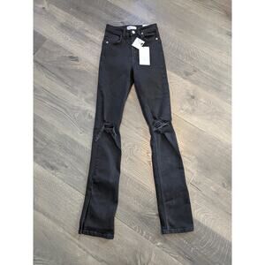 NWT Zara High Rise Skinny Split Jeans Distressed Sz 0 Black