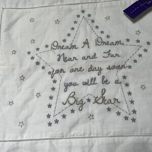 New with tags Zara Home Kids nursery pillow case / pillow cover. Looks to fit toddler sized pillow. Features embroidered design with metallic gold and pastel blue Star design.