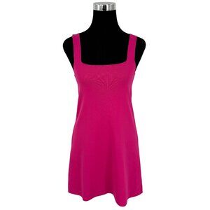 NWT Zara Hot Pink Knit Square Neck Ribbed A-Line Bodycon Barbiecore Mini Dress S