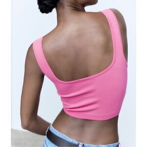 NWT Zara Hot Pink Limitless Contour Collection Ribbed Cropped Tank Top, Size M-L