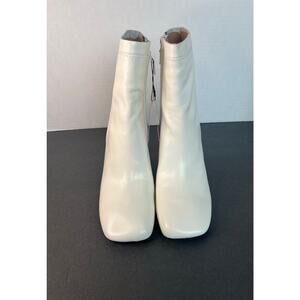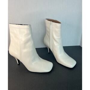 NWT Zara Ivory Off White Leather Square Toe Low Heel Zip Ankle Boots Sz 9