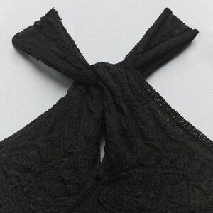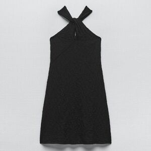 NWT Zara Textured Halter Neck Mini Dress in Black Size M. Dimensions upon request.