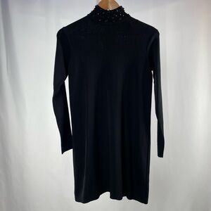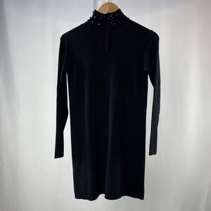NWT Zara Jeweled Turtleneck Long Sleeve Knit Dress in Black Size Small