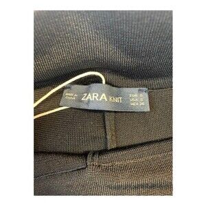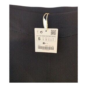 NWT Zara Knit | Black Straight Leg Rib Pants w/ Cream Stripe S