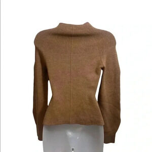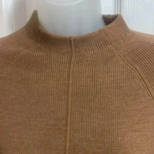 This soft and stretchy sweater is a perfect staple piece. Rich camel color. Mock neck. Soft wool blend material.