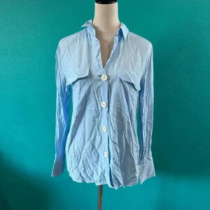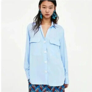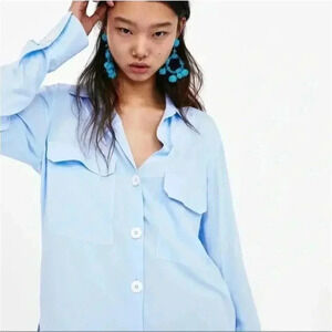 NWT Zara Light Blue Oversized Pocket Long Sleeve Button-Down Shirt Size XS