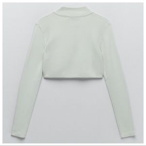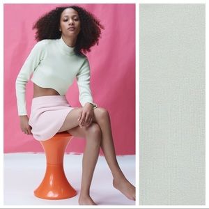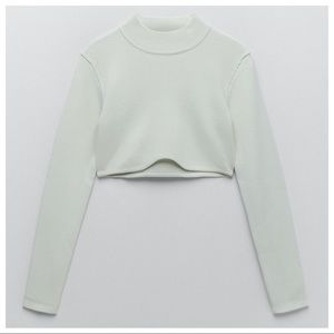 NWT. Zara Light Green Knit Crop Top with high neck, long sleeves. Size M. Ref. 3519/047. Pit to pit 14,5" flat, shoulders 13", sleeves 23", length 13,5". 1060. DO2