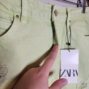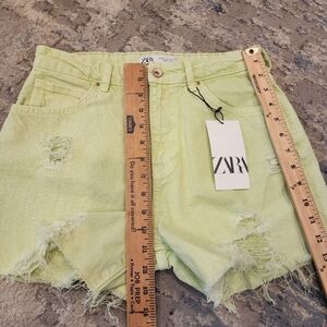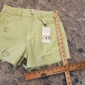 NWT Zara Lime Green Denim Distressed Cutoff Shorts women's size 6
