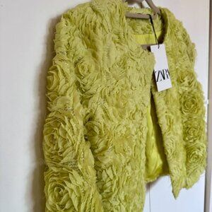NWT Zara Jacket With Textured Flower Detail - Size SMALL- Lime Yellow Green- (Mistagged- the attached tag says XL, but it is a SIZE S according to the inside label, which is correct)