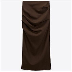 NWT Zara Limited Edition Linen Blend Draped High Waist Midaxi Skirt in Brown