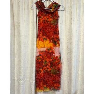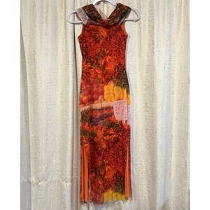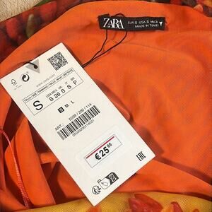 NWT Zara Lined Fruit Print Off Shoulder Mesh Maxi Dress Red Women's Size Small !