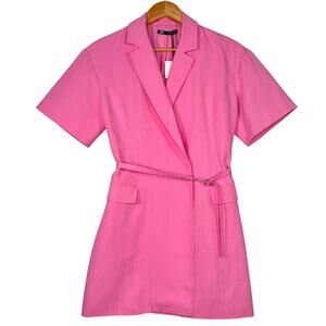 NWT Zara Linen Blend Blazer Mini Pink Dress Bloggers Favorite Barbiecore Size S