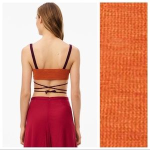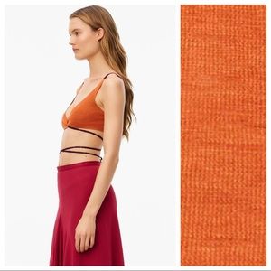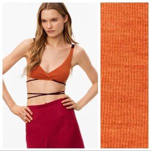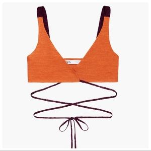 NWT. Zara Limited Edition Linen Blend Orange Knit Crop Top with V-neckline, wide straps, front contrast tie closure. Size S. Ref. 3859/043. P
