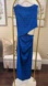 Dress made with linen. Round neck and sleeveless. Side cut-out detail at the waist and ruffle trim. Hem with vent in the back. Back hidden in-seam zip closure. Stunning blue asymmetrical dress with unique cutout design. Perfect for special occasions.