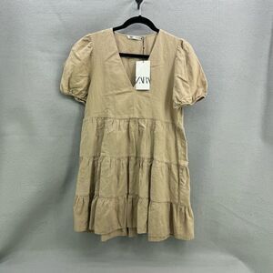 NWT Zara Linen Blend Babydoll Puff Sleeve Dress Size XS