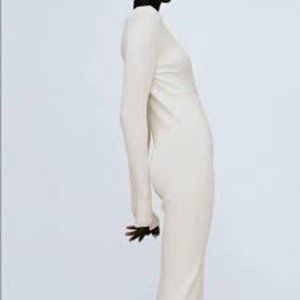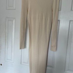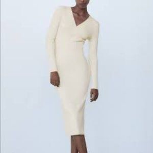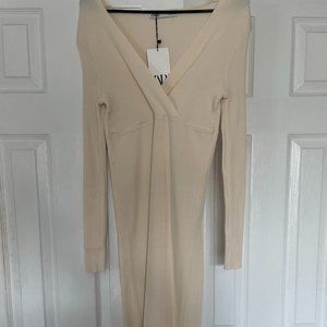 Zara Knit Midi Dress Size M Condition New with Tags Color Ecru V-Neck Wrap Long Sleeves