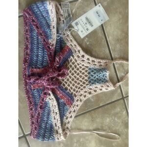 NWT Zara M Crochet Multicolor Halter Top Blouse Back Tie