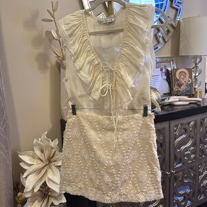 NWT Zara | MINI SKIRT WITH FRAYED EMBROIDERY Elegant Cream Embroidered Skirt
