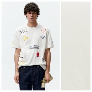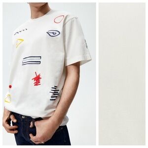 NWT. Zara Man White Abstract Print T-Shirt. Size M.
