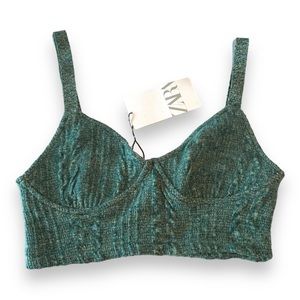 NWT Zara Marl Knit V-Neckline Corset Crop Top In Color Green Size Medium. Details polyester 66%, viscose 33% Straps elastane 1% polyester 67% viscose 33% wash inside out flat dry