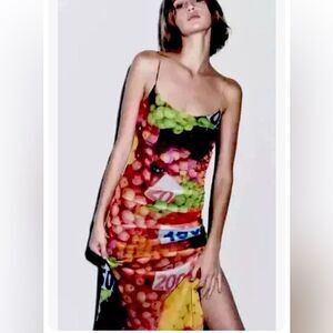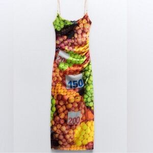NWT Zara Mesh Fruit Stand Print Maxi Dress Medium
